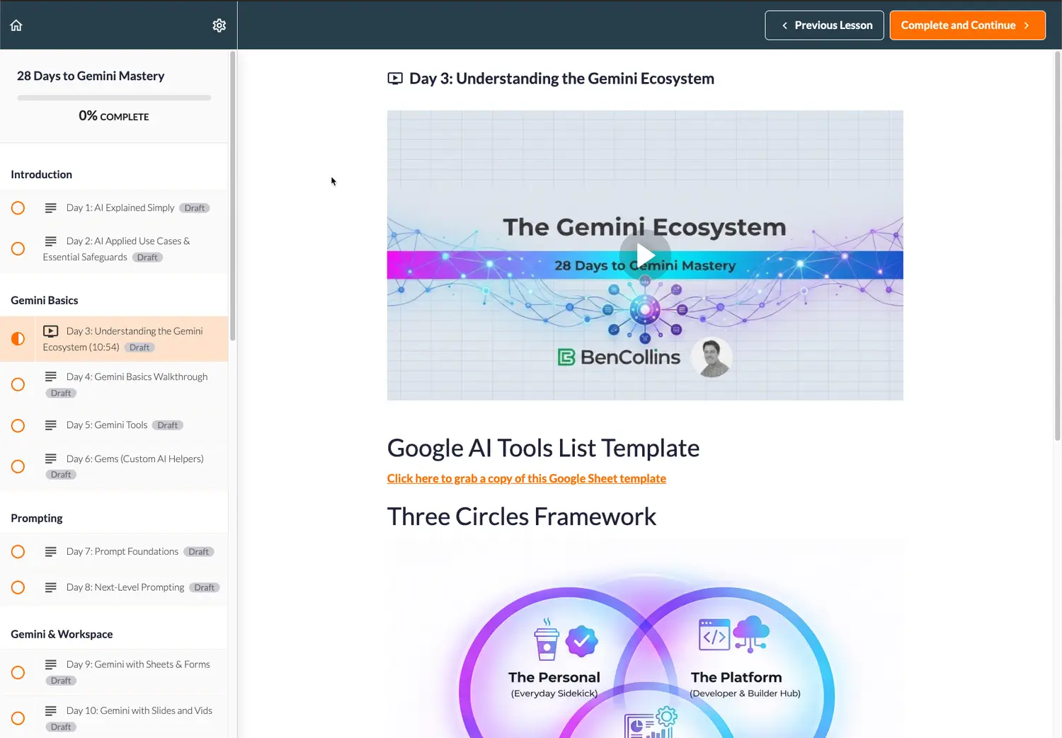 Whilst the course has over 6 hours of video lessons, covering Gemini, NotebookLM, automations, agents, and a host of other techniques, you don't have to watch them all, or watch them in a particular order.