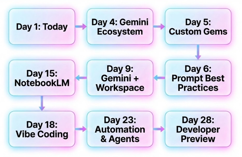 28 Days to Gemini Mastery is a structured, day-by-day roadmap designed to move you from AI curiosity to workplace authority. This isn't about chasing "groundbreaking" hype; it’s about building a reliable, professional-grade workflow using the Gemini ecosystem.